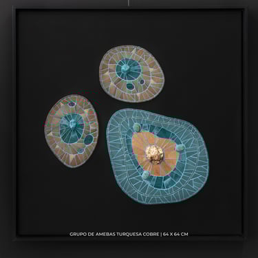 Esta serie de obras surge durante un período de introspección personal y colectiva, como fue la pandemia de COVID-19, y se constituye en un proceso terapéutico y de mindfulness para mí. A través de la exploración del mundo microscópico, creo piezas que funcionan como ventanas hacia un universo de formas y estructuras invisibles a simple vista.